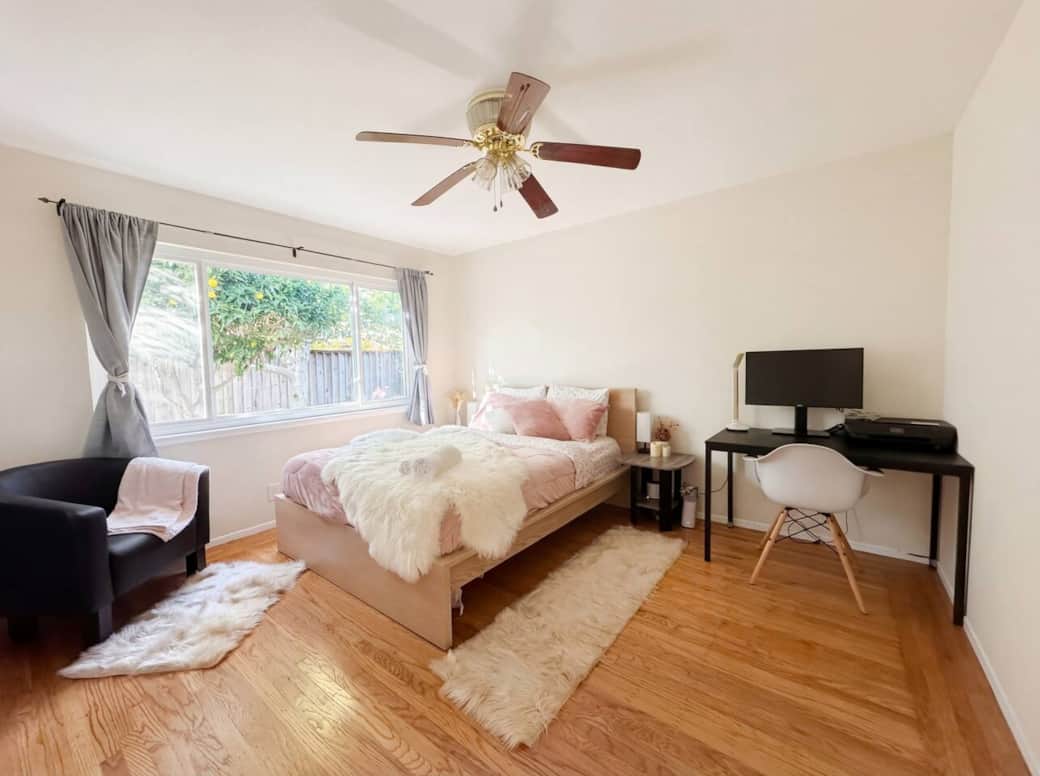You’ll have the entire home to yourself with a private entrance and no shared spaces. Enjoy exclusive use of the living room, full kitchen, dining area, 2 bathrooms, and 3 bedrooms—each set up with its own dedicated workspace. The property also offers 4 parking spots (2 in the garage and 2 in the driveway), a large front yard, and a spacious backyard with three mature fruit trees, outdoor seating, and basic outdoor fitness equipment, plus an in-unit washer and dryer for your convenience.